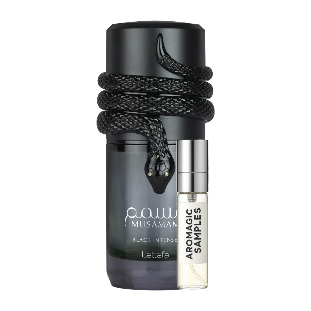 Lattafa Musamam Black Intense is a bold, refined fragrance defined by richness and lasting power. It opens with a fresh yet spicy blend of lavender, nutmeg, bergamot, and sage, leading into a floral-woody heart of geranium, rosyfolia, mahonial, and cedarwood. The dry-down is warm and addictive, combining maple wood, patchouli, tonka bean, cocoapulse, and ambrofix for a smooth, sweet-woody amber trail—ideal for evenings and statement wear.